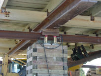 the I-beams into position over the pilings.